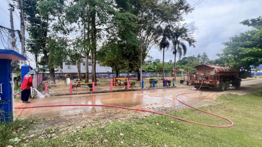 โรงเรียนอนุบาลศรีบรรพตขอขอบพระคุณท่านนายกองค์การบริหารส่วนตำบลเขาย่า ที่ให้ความอนุเคราะห์รถฉีดน้ำพร้อมคนขับ มาฉีดล้าง ทำความสะอาดบริเวณภายในโรงเรียน เพื่อต้อนรับการเปิดภาคเรียนที่ 1 ปีการศึกษา 2568 ในวันที่ 16 พฤษภาคม 2568 S:0