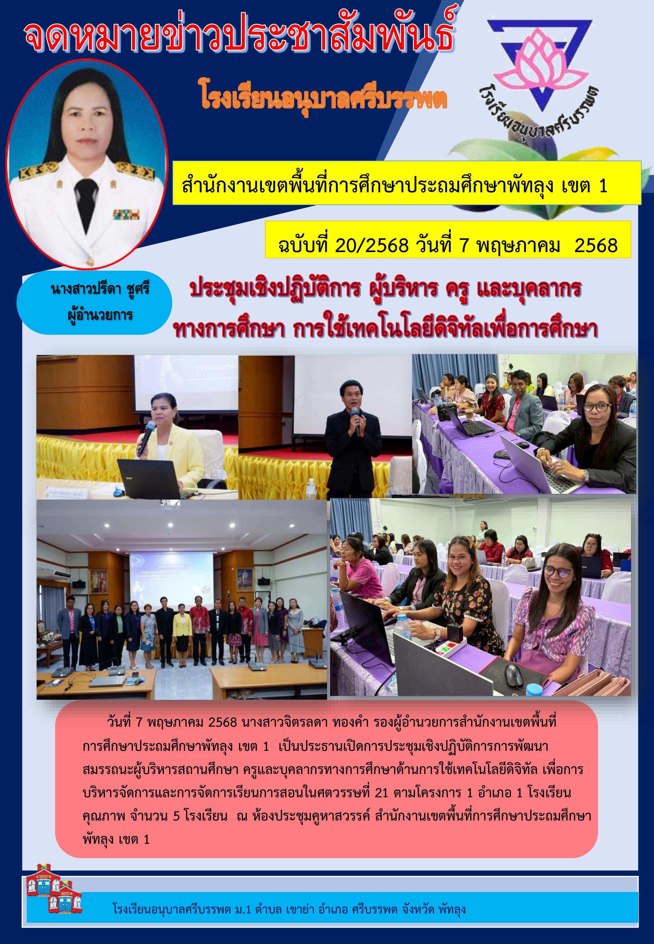 ประชุมเชิงปฏิบัติการ ผู้บริหาร ครู และบุคลากรทางการศึกษา การใช้เทคโนโลยีดิจิทัลเพื่อการศึกษา