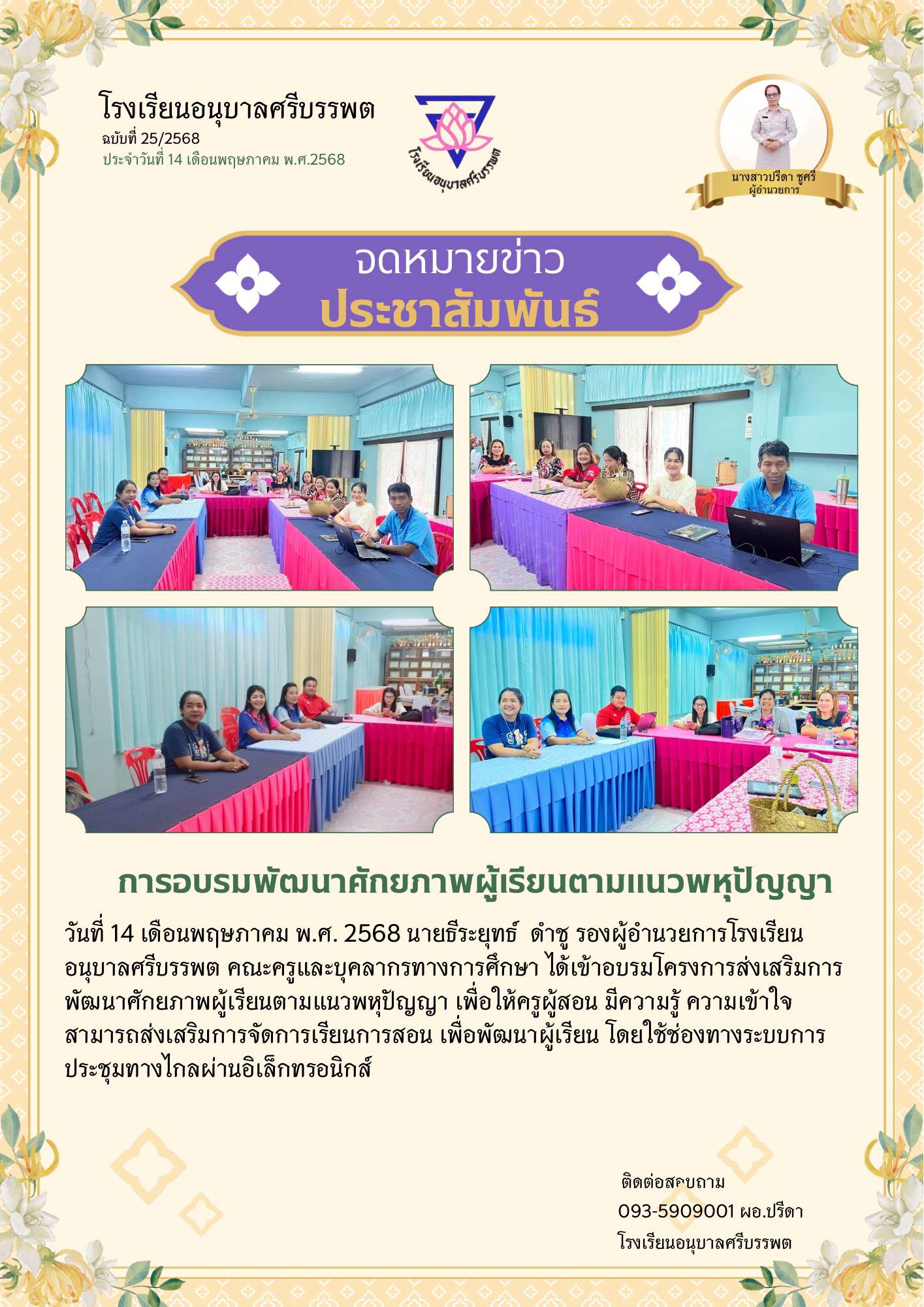 การอบรมพัฒนาศักยภาพผู้เรียนตามแนวพหุปัญญา