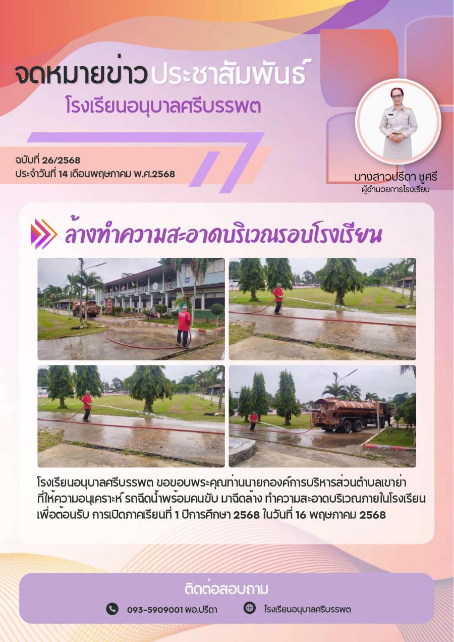 นายกองค์การบริหารส่วนตำบลเขาย่าให้ความอนุเคราะห์รถนำ้มาทำความสะอาดบริเวณรอบโรงเรียน