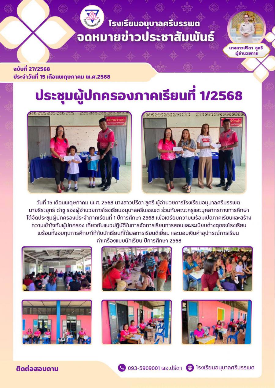ประชุมผู้ปกครองภาคเรียนที่1ปีการศึกษา 2568