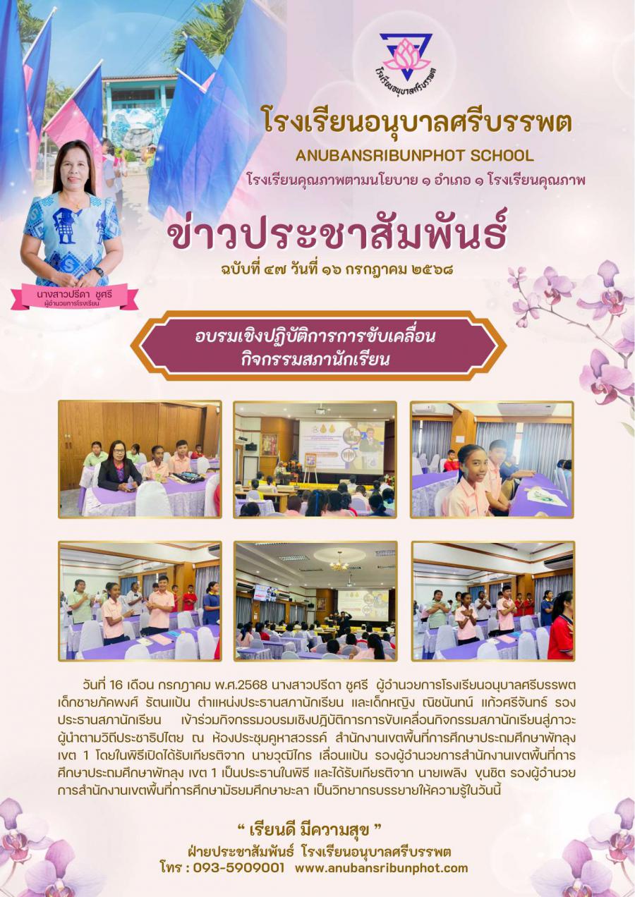 อบรมเชิงปฏิบัติการการขับเคลื่อน กิจกรรมสภานักเรียน